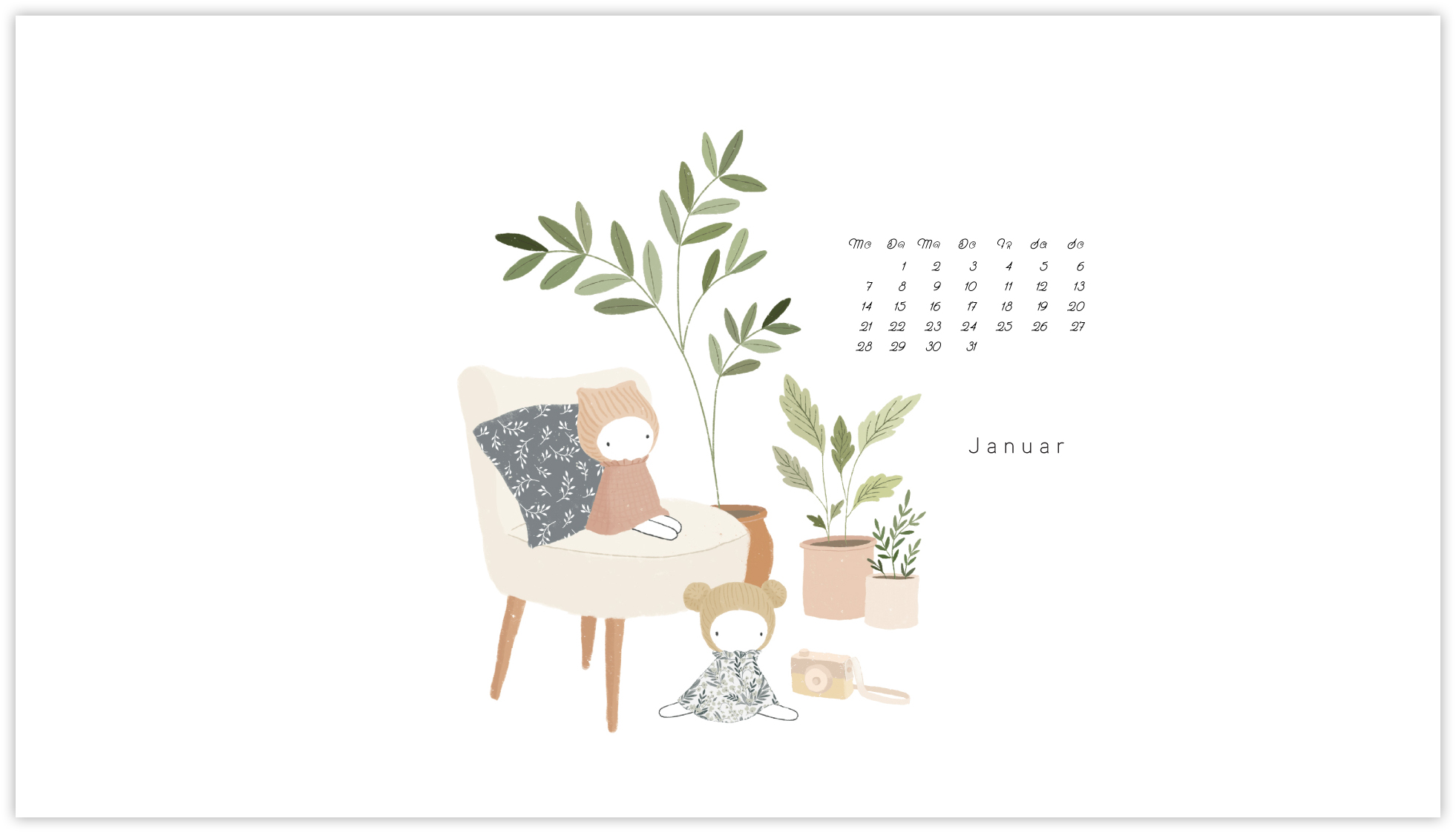 Wir haben auch in diesem Jahr wieder jeden Monat jeweils zwei Wallpaper zu unseren Kartenthemen Hochzeit und Geburt und ihr dürft wieder zwischen je einer Version mit Kalender und einer mit einem schönen Spruch oder Zitat wählen.